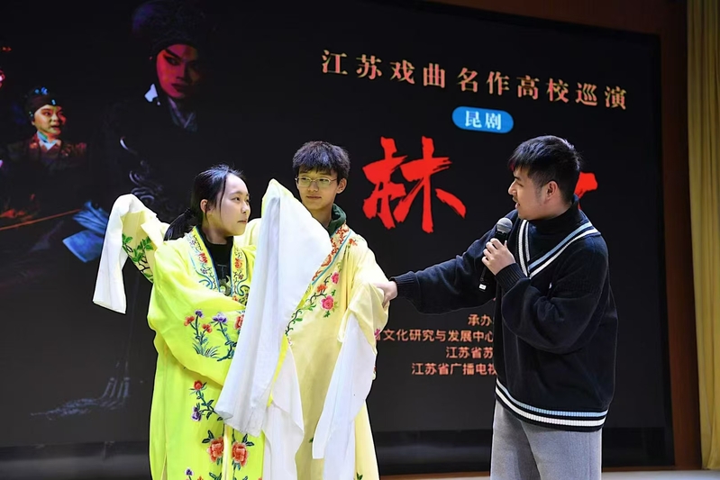 近日,由中共江苏省委宣传部、江苏省教育厅主办的2024年江苏戏曲名作高校巡演走进我校江宁校区,为我校师生带来昆剧《林冲》。《林冲》将水浒经典以昆剧的形式演绎出来,不仅是对传统昆剧艺术魅力的淋漓展现,更是一次戏曲经典与校园文化建设有机结合的美育实践,获得了观演师生的如潮好评。