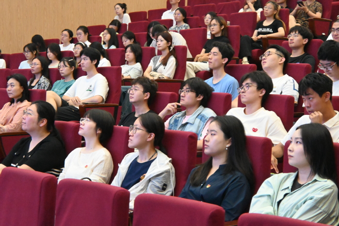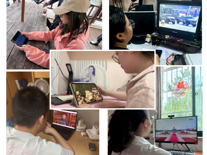 与此同时,因暂未返校而无法到场参加的学生们也通过线上方式同步自主观看。虽相隔屏幕,学生们仍积极交流感想,表达对革命先辈的崇高敬意与对祖国强盛的自豪之情,形成了良好的学习氛围、引发了强烈的集体共鸣。